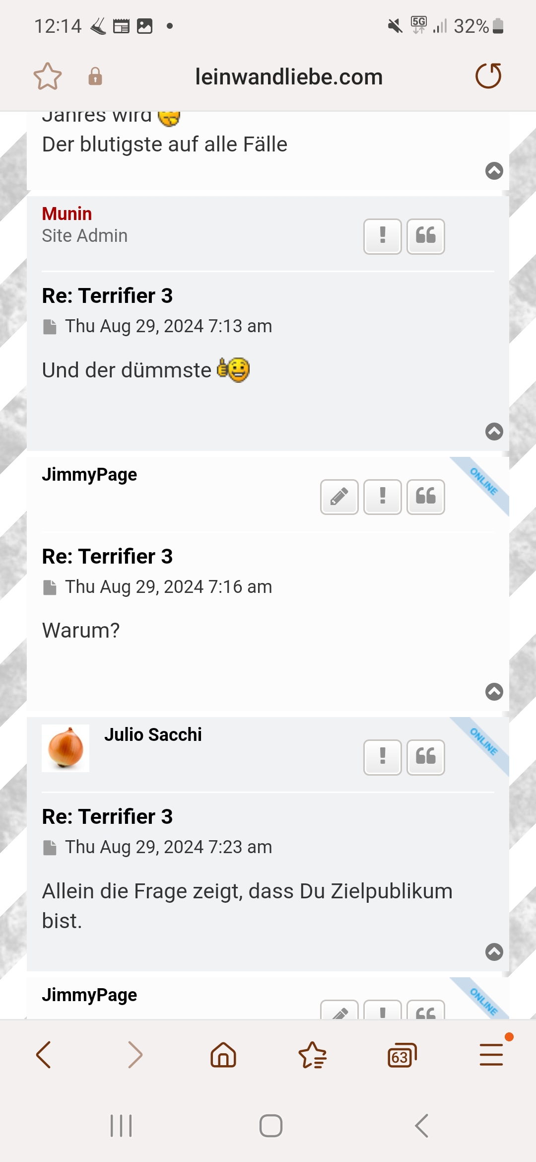 Es ging darum. Das wir anscheinend persönlich werden.Julio Sacchi wrote: ↑Thu Aug 29, 2024 9:57 am Komisch, dass Ihr immer persönlich werden müsst, wenn's um Eure Lieblings-Incelfilme geht. "Serbian Film ist viel geiler als Deine Birkenstocks", da wär das Geheule groß.